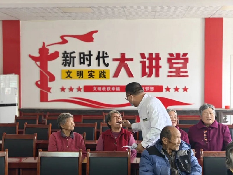 活動現(xiàn)場暖意融融,醫(yī)院為村中老人送去節(jié)日的問候和米、面、油等生活用品。義診期間,專家與老人們親切交談,細(xì)致詢問他們的日常生活起居、身體健康狀況,傾聽他們的需求與心聲,耐心細(xì)致地為每一位老人測量血壓、進(jìn)行口腔健康檢查?;顒又?,針對牙齒松動、牙齦問題、義齒維護(hù)等常見老年口腔疾病進(jìn)行答疑解惑,并根據(jù)個人情況提供了個性化的治療建議和指導(dǎo)方案。醫(yī)生們還現(xiàn)場示范了正確刷牙方法和日常口腔護(hù)理要點,幫助老人們掌握科學(xué)口腔保健知識。